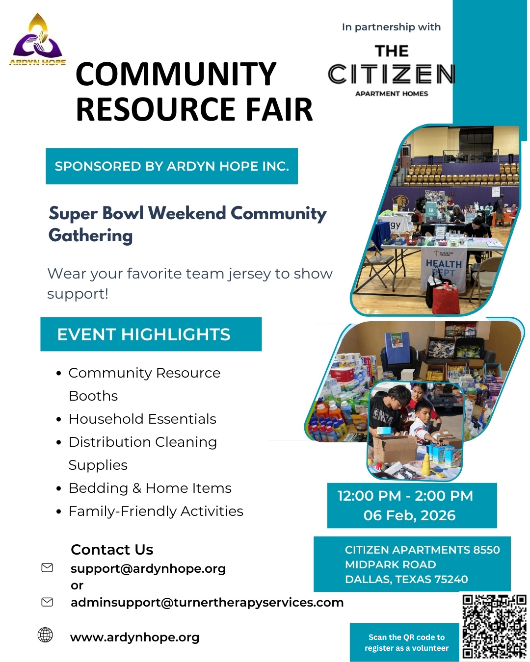 Join us for a family-friendly Community Resource Fair designed to support and uplift our community. This event will provide access to essential household items, including cleaning supplies, bedding, and other home necessities. Attendees can also explore community resource booths and enjoy engaging activities for the whole family.