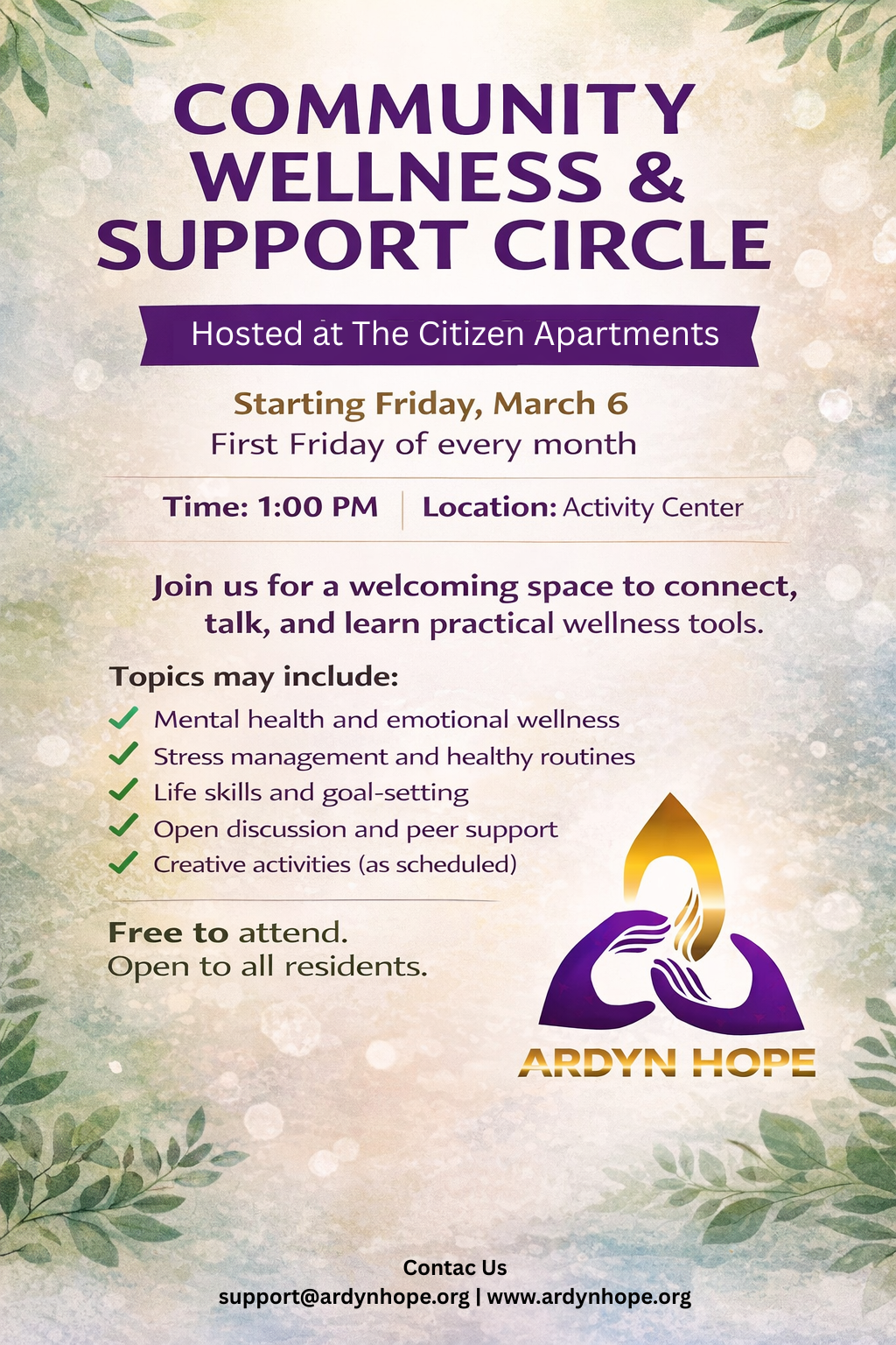 Communities interested in hosting a resident circle can contact us at support@ardynhope.org.